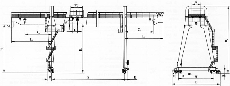 吊鉤雙梁門式起重機適用于露天倉庫或鐵路沿線進行一般的裝卸及起重搬運作業(yè)。