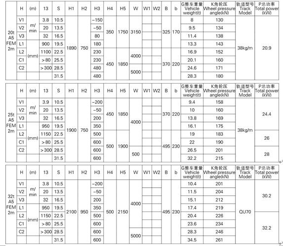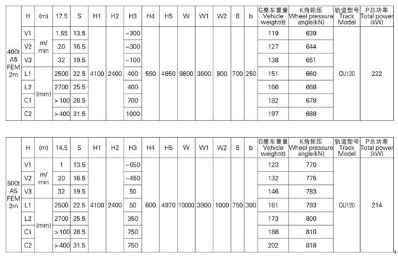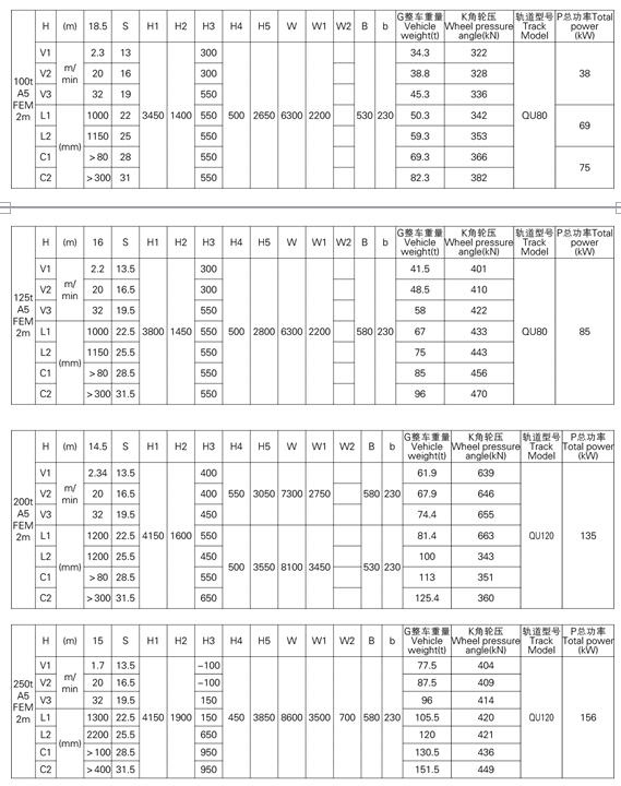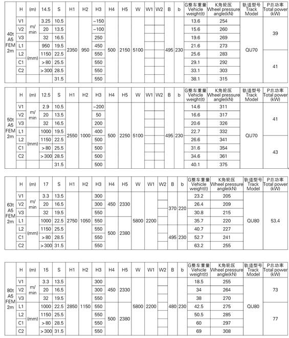 3、表中的尺寸,重量,輪壓供客戶訂貨時參考,如果客戶的需要條件發(fā)生變化,如工作級別,速度,起升高度有變化時,相應(yīng)的參數(shù),尺寸,重量,輪壓等都會發(fā)生變化,實際的參數(shù),質(zhì)量,輪壓以合同的要求為準(zhǔn)。