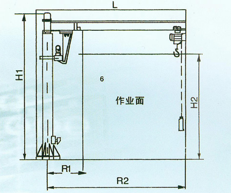 懸臂吊起重機工作強度為輕型,起重機由立柱,回轉(zhuǎn)臂回轉(zhuǎn)驅(qū)動裝置及電動葫蘆組成,立柱下端通過地腳螺栓固定在混凝土基礎(chǔ)上,由擺線針輪減速裝置來驅(qū)動懸臂回轉(zhuǎn),電動葫蘆在懸臂工字鋼上作左右直線運行,并起吊重物。起重機立柱為空心型鋼結(jié)構(gòu),自重輕,跨度大,起重量大,經(jīng)濟耐用。